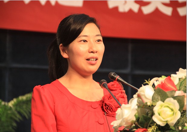 “今天是教师节,我准备了一束花,送给我母校的老师们,祝老师们教师节快乐!”在新生们的掌声中,邓丽将手上的一束百合送给了母校的党委书记陈伟同志,以表示对母校老师们节日的祝福。
