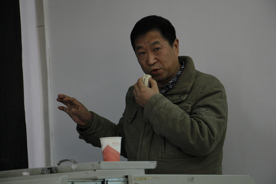 图为中国教育报记者程墨为同学们讲如何做好教育新闻 摄影:杨文婷