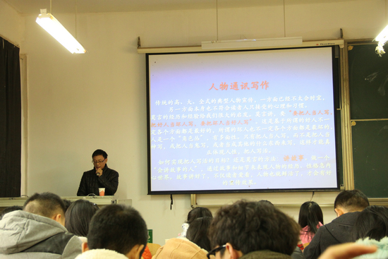 下午4:00,程墨老师以《怎样做好教育新闻》为主题,从关键词的运用、文章结构、写作手法、常见问题四个方面,详细讲述了消息、通讯写作的技巧。他指出,好的通讯要写出一种精神,既要精选骨干材料刻画人物细节,还要借助文学手法。