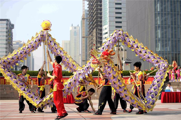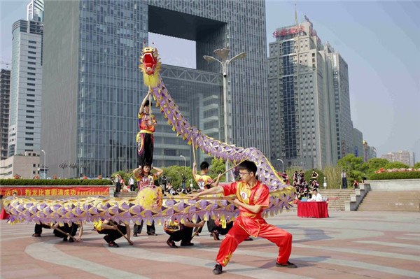 新闻中心讯(记者王依林)4月15日,第一届湖北省“极目楚天舒”全民健身系列赛事(活动)——2017年湖北省舞龙比赛在武汉洪山广场举办。本次比赛作为全省备战第十三届全运会群众比赛舞龙项目的预选赛,吸引了来自湖北省各地市州的20支队伍进行角逐。bat365平台官网舞龙队凭借队员的坚韧和动作超高的完成度,通过全运会省级的预赛,并成功获得自选舞龙项目的银奖。