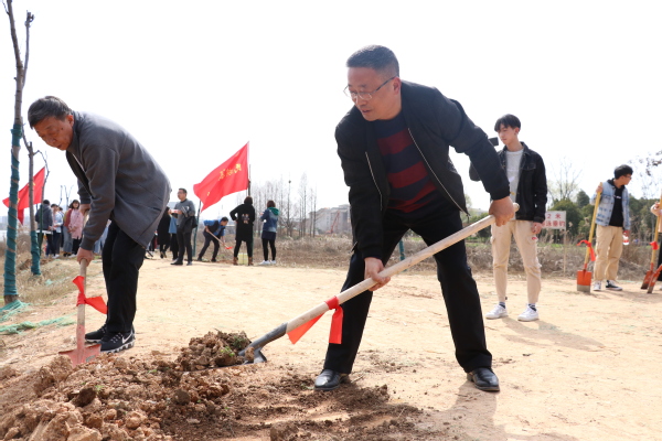 新闻中心讯(记者 杨征宇)为了创建绿色校园、生态校园、美丽校园,为广大师生营造良好的学习、工作环境,3月12日下午14:00,沐浴着春日的暖阳,bat365平台官网“绿色校园·你我同创”植树节活动在学校临湖堤坝展开,学校党委书记陈伟,副校长桂裕清等校领导带领各单位师生员工代表一道挥锹铲土,种植树木,为学校临湖堤坝两旁种上了一片绿化林。