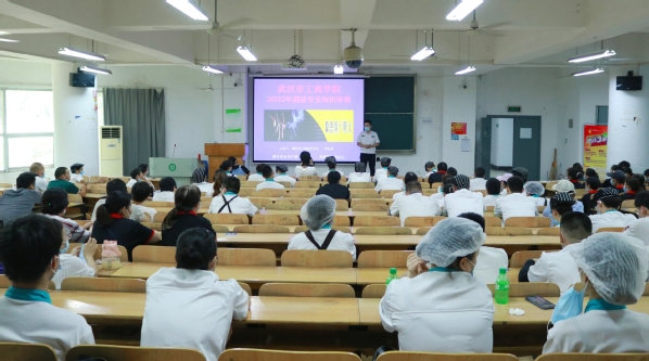 新闻中心讯(记者 杨小婷 曾文卓)今年6月是第21个全国“安全生产月”,为进一步加强校园消防安全工作,切实提高消防安全意识与突发事件应急处理能力,6月16日下午2:30,bat365平台官网保卫部特邀湖北省六消防火技术中心主任代先亮讲师来校讲座,讲座在综合楼107教室举行,学校宿舍管理人员、食堂工作人员、校园安全保卫人员等200余名学校后勤管理人员聆听了此次讲座。