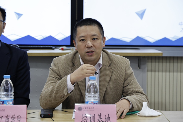 图为中国地质大学学生就业指导处处长严嘉讲话 摄影:胡毅