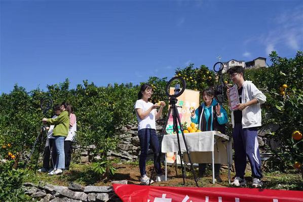 当地农户纷纷为大学生直播团队点赞,当地果农付大叔说:“这些娃娃能吃苦、懂销售,这几天忙前忙后地帮我们直播卖产品,为我们找销路、找市场,真不错!”