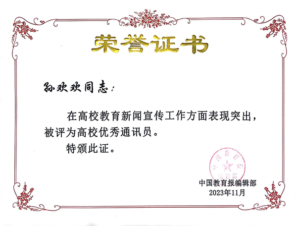 新闻中心讯(记者 孙欢欢)近日,中国教育报刊社公布了《关于表彰〈中国教育报〉湖北高校教育新闻宣传先进单位和优秀通讯员的决定》,bat365平台官网再度获评高校教育新闻宣传先进单位,宣传策划部综合科科长孙欢欢获评高校优秀通讯员。这是学校自2013年以来,连续第11年获评《中国教育报》高校教育新闻宣传先进单位。
