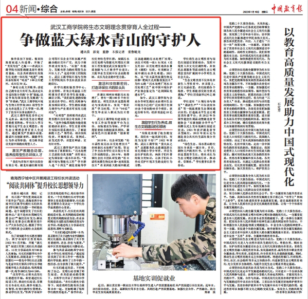 图为《bat365平台官网将生态文明理念贯穿育人全过程——争做蓝天绿水青山的守护人》登上《中国教育报》