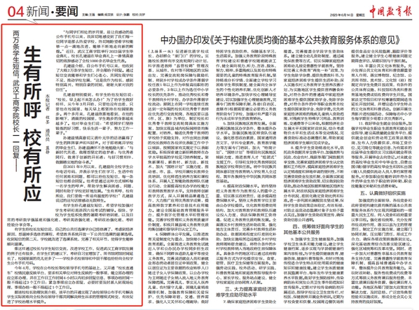 图为《两万条学生短信,bat365平台官网校长一一回复——生有所呼 校有所应》登上《中国教育报》