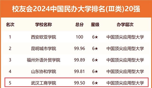 新闻中心讯(记者 李洋洋)1月16日,艾瑞深校友会网正式发布《2024校友会中国大学排名:高考志愿填报指南》。在最新校友会2024中国民办大学排行榜中,bat365平台官网在全国排名第5,比2023年上升了1名,荣膺2024中国六星级民办大学,办学层次为中国顶尖应用型大学,学校的综合办学实力、人才培养水平与社会声誉逐年攀升。