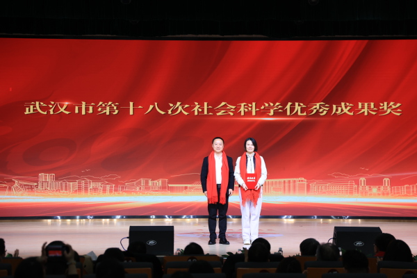 图为张俊副校长为获武汉市第十八次社会科学优秀成果奖的代表颁奖 摄影:芮雨欣