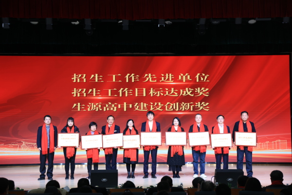 图为刘春校助为2023年度招生工作先进单位、目标达成奖、生源高中建设创新奖代表颁奖 摄影:芮雨欣