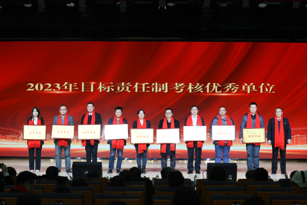 图为左宗文副校长为2023年目标责任制考核优秀单位的代表颁奖 摄影:孙欢欢