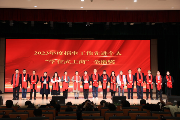 图为刘春校助为2023年度招生工作先进个人、“学在武工商”金播奖代表颁奖 摄影:芮雨欣