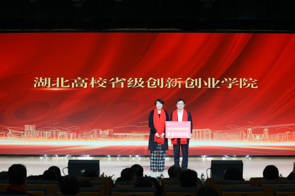 图为学校监事会孙冉主席为湖北高校省级创新创业学院代表颁奖 摄影:孙欢欢