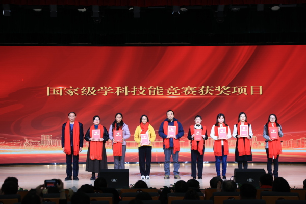图为李祖超副校长为国家级学科技能竞赛获奖项目代表颁奖 摄影:芮雨欣