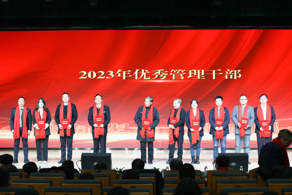 图为王程军总会计师为2023年优秀管理干部颁奖 摄影:孙欢欢