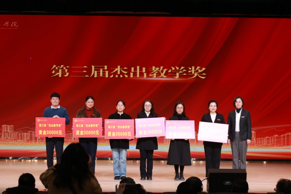 图为亓小林教授为第三届杰出教学奖代表颁奖 摄影:芮雨欣
