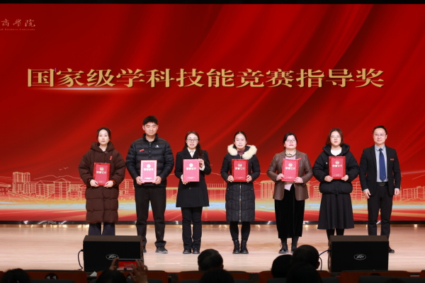 图为张俊副校长为国家级学科技能竞赛指导奖代表颁奖 摄影:芮雨欣