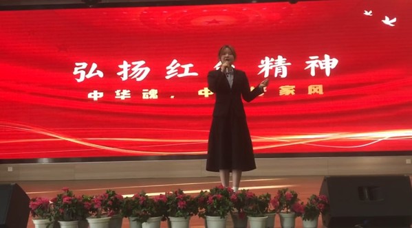 图为金栩冰参与“中华魂”中华好家风演讲比赛