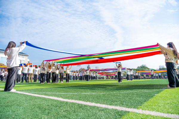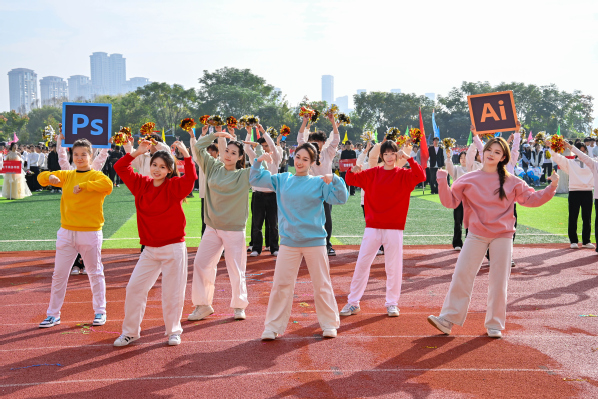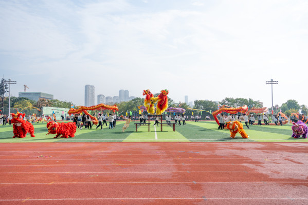 公共课部还精心准备了大型广播体操展示、“锦绣中华”彩带操和舞龙舞狮表演,千余名学生参演,现场气氛隆重而热烈。