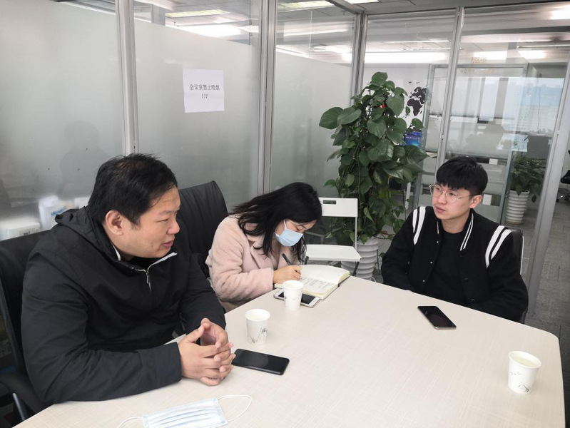 企业座谈后开展实习学生师生座谈,了解学生的实习情况,学业情况、未来打算等,收集实习学生的对专业实习建议。在杭州四喜信息技术有限公司实习的刘小玉同学表示实习很累有很多东西要学但自己成长很快,目前在电商运营岗已转正,希望能有机会留在杭州。