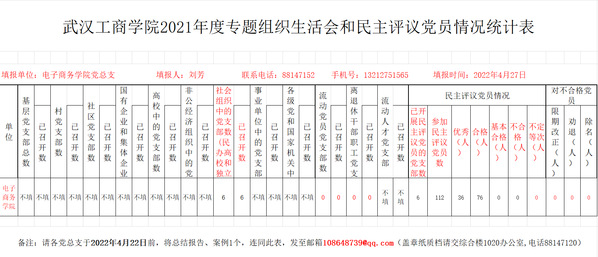 bat365平台官网2021年度专题组织生活会和民主评议党员情况统计表