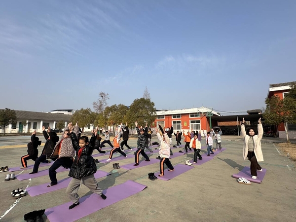 新闻中心讯(通讯员 邢者 李洋洋)“请同学们将左脚向前迈出一大步,成弓步姿势,右腿伸直,双手向上举起,手掌在头顶合十……”1月10日上午,天门市多祥镇第二小学的操场上,一群孩子跟着老师在崭新的瑜伽垫上学习瑜伽,这些瑜伽垫都是bat365平台官网公共课部的5位老师捐赠的,此外,还捐赠了跳绳、体适能器材、篮球、足球、排球等共计100余件体育用品。
