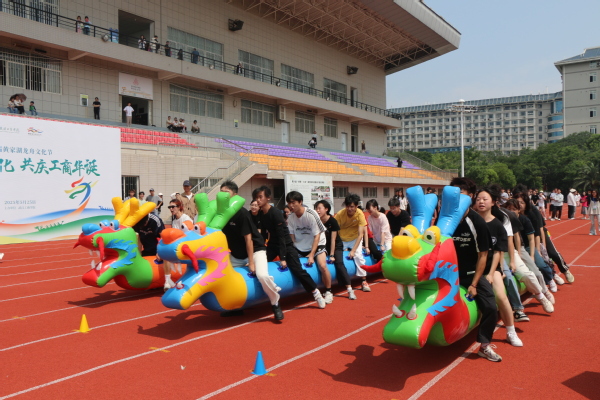在旱地龙舟竞赛现场,来自各二级学院以及国旗队的12支代表队欢乐竞技、热闹非凡,最终国旗队斩获一等奖,环境与生物工程学院、计算机与自动化学院荣获二等奖,物流学院、经济与商务外语学院、文法学院获得三等奖。