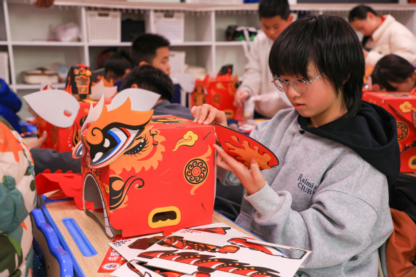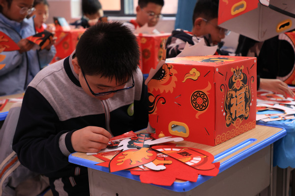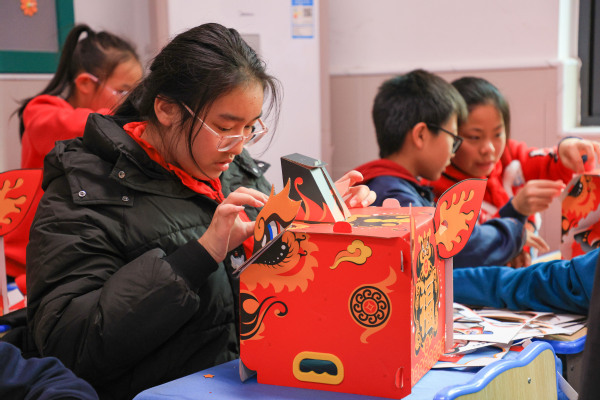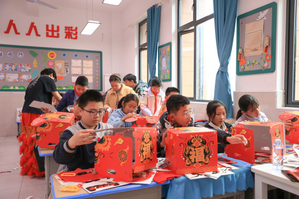 手工制作环节则成为孩子们亲近非遗、动手创造的乐园。在老师和大学生们手把手的指导下,孩子们认真裁剪、拼贴、装饰,将平面材料变成立体灵动的狮头作品。“看,我做的醒狮头成功了!”学生孔祥麟高举自己的作品,眼中满是自豪。指尖流转之间,非遗不再是书本上的概念,而成为了可触摸、可创造的文化印记。
