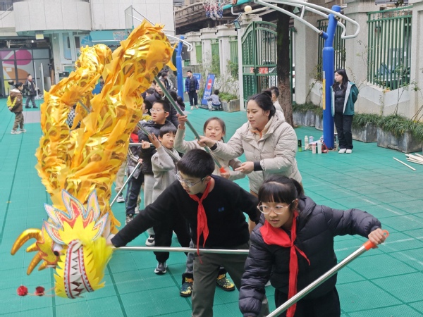 教学过程中,孩子们在老师的指导下分组手持彩龙,随着鼓点节奏携手舞动。一条条“小龙”在操场上有序穿梭、起伏翻腾,孩子们在协作中体会着传统体育的乐趣。“不仅要做好自己的动作,还要和同伴配合好,龙才能舞得活!”一名学生在课后兴奋地说。
