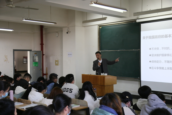 新闻中心讯(记者 洪晶 见习记者 黄菊萍)12月4日上午8:20,校党委书记刘生元以“百年未有之大变局下的中美关系”为题,在综合楼408教室,为各学院2021级的学生代表讲授“形势与政策”课。
