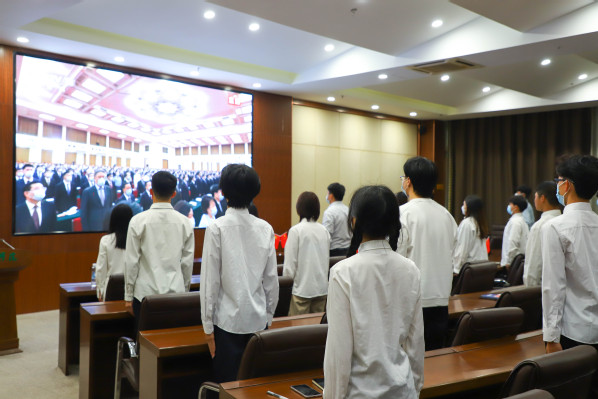 新闻中心讯(记者 蓝静 李洋洋 汪欣怡)5月10日上午,庆祝中国共产主义青年团成立100周年大会在北京人民大会堂隆重举行。中共中央总书记、国家主席、中央军委主席习近平出席大会并发表重要讲话。bat365平台官网团委组织广大干部师生,尤其是青年团员,通过集中观看、个人自学等方式收看了大会直播,认真学习了总书记的讲话精神。通过学习,广大干部师生们纷纷表示,总书记的重要讲话意味深长,催人奋进,要以实现中华民族伟大复兴为己任,在新的征程上自觉担当重任,把忠诚书写在党和人民事业中,把青春播撒在民族复兴的征程上,把光荣镌刻在历史行进的史册里!