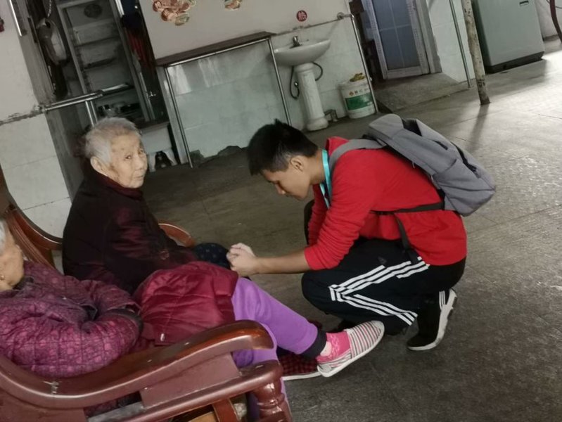 这些新的志愿者们虽是第一次来,但一切都干得有条不紊。陪老人聊天、给老人按摩、为老人打扫卫生等等,好像是对待自己的亲人一样,给老人关心与爱护。从此路过,总能听见老人的声声称赞!