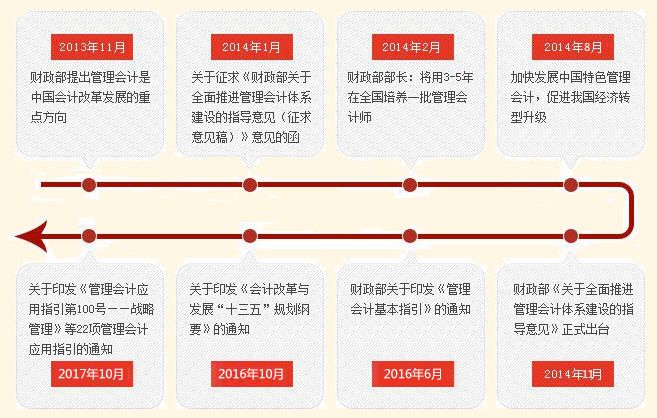 2013年9月,财政部将管理会计列入今后会计改革发展的重点方向,并积极采取有效措施,加强管理会计制度建设,加强管理会计人才培养。