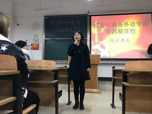 2017年12月25日晚7:30经济与商务外语学院第四期党校结业典礼在综合楼顺利召开,办公室主任黄燕老师,党校带队主讲人杨建平老师出席了本次结业典礼,典礼由经济与商务外语学院青年马克思主义研究协会承办。