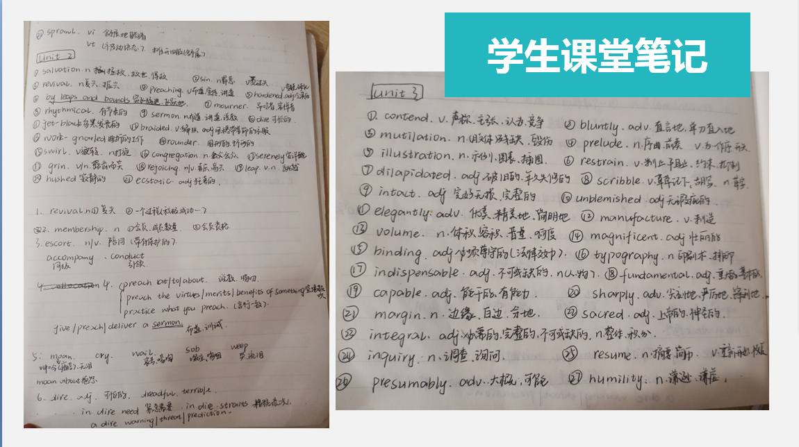 我一般在夜深人静的时候录课,工具是电脑屏幕录像软件。由于学生手中没有教材,师生的交流也无法做到面对面,这就对PPT上呈现的内容有了更高的要求。少了教室里的黑板作辅助,只有将PPT里面的内容编辑得更加的详尽,才能更好地帮助学生理解文章的内容。与此同时,要运用简洁精炼的语言对PPT进行讲解,也需要老师在讲解词上花一番功夫。