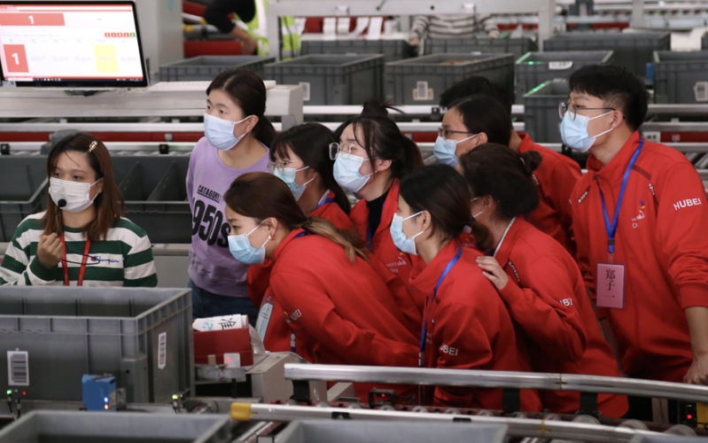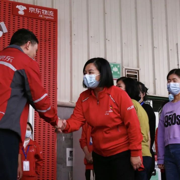 下午1点国家队集训队员们在武汉阳逻了解京东“亚洲一号”物流仓储业务。