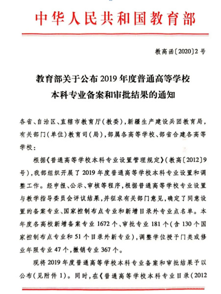 近日,教育部下发了《关于公布2019年度普通高等学校本科专业备案和审批结果的通知》(教高函[2020]2号),bat365平台官网申报的机器人工程、软件工程、艺术与科技3个新增本科专业,经过申报、公示、审核程序,顺利通过国家教育部批准,3个新增专业可从2020年起开始招生。