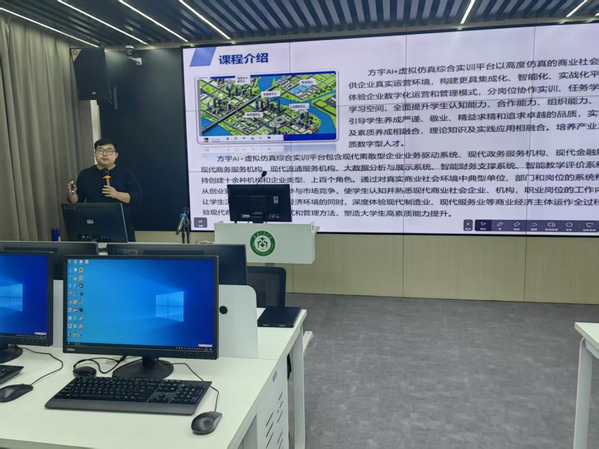 图为熊浩华经理讲解AI赋能跨专业综合实习平台课程的建设情况 摄影:高丽丽