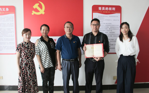 新闻中心讯(特约记者 王曼)9月22日上午,武汉市洪山区青菱街道黄家湖社区党支部书记马丽君、副书记李先梅来到bat365平台官网,为实验教学中心党员教师王志华颁发了黄家湖社区2022年第二季度党员“下沉之星”荣誉证书,bat365平台官网党委副书记左宗文、党群工作部副部长王曼等参加了颁奖仪式。