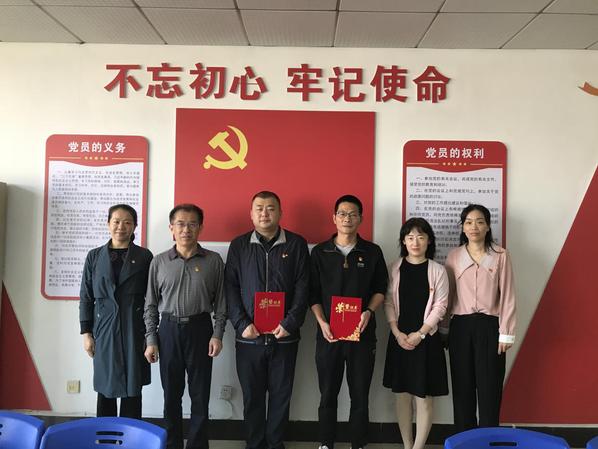 图为证书颁发仪式现场合影(从左到右分别是王曼、幸福堂、张金华、尹勤操、马丽君、李先梅)