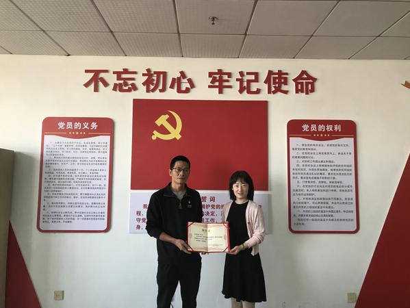 图为马丽君书记授予尹勤操2023年第二季度“下沉之星”荣誉证书