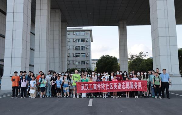 图为英语俱乐部社区志愿服务队和社区的孩子们合影