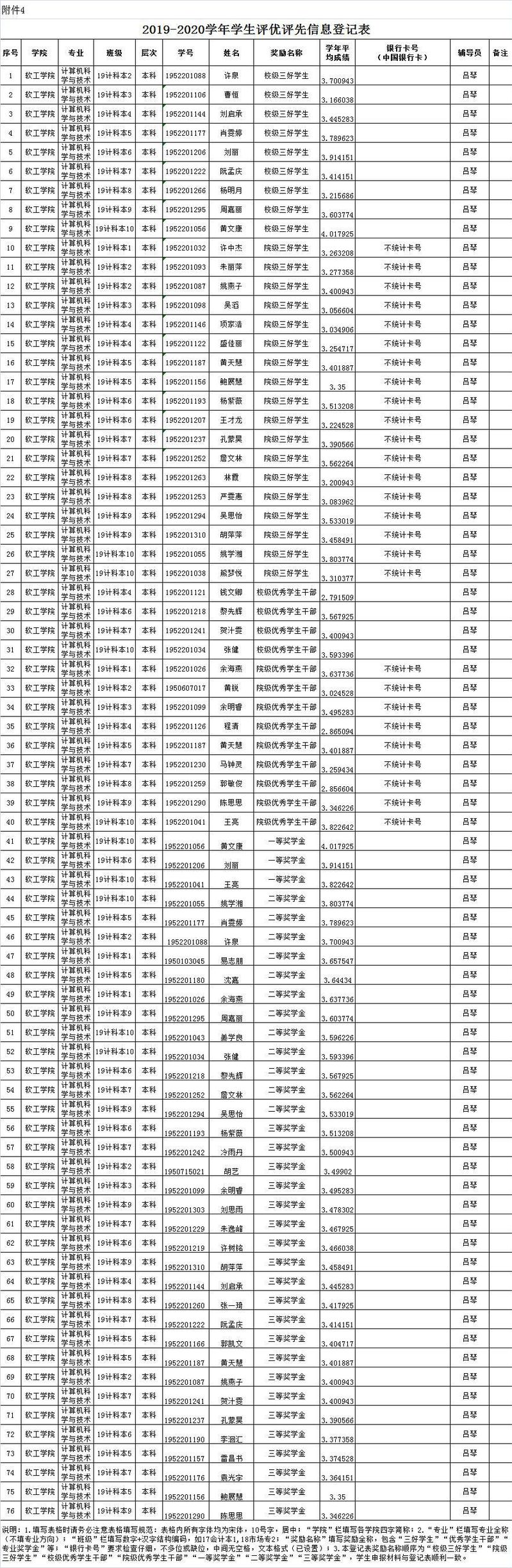 软件工程学院2019级评优评先结果公示