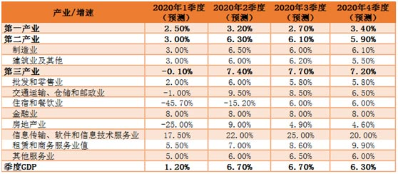 (一)服务业受冲击最严重,预计2020年一季度增速为-0.1%,上半年增速为3.7%