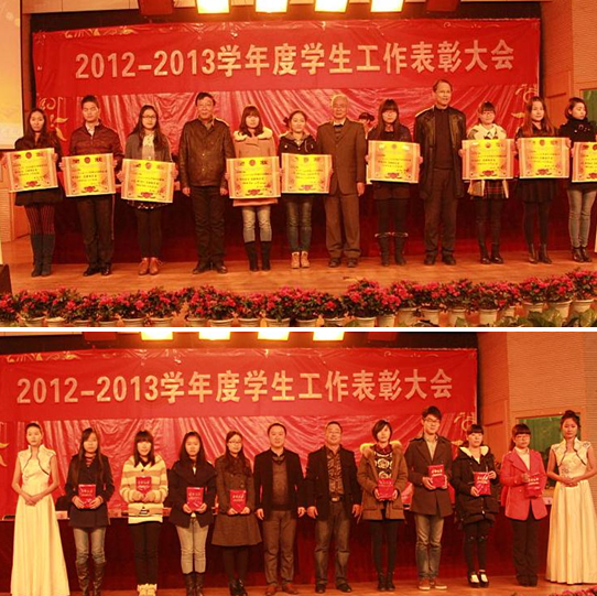表彰大会在庄严隆重的国歌声中开始;接着教务部部长吴敏同志宣读关于表彰2012-2013学年度“先进班集体”,“优秀学生干部”、“三好学生”、“优秀学生干部”、“奖学金”以及“单项优秀奖”的决定;大会第三项党委宣传部部长狄奥宣读关于表彰2012-2013学年度暑假社会实践积极分子的决定。