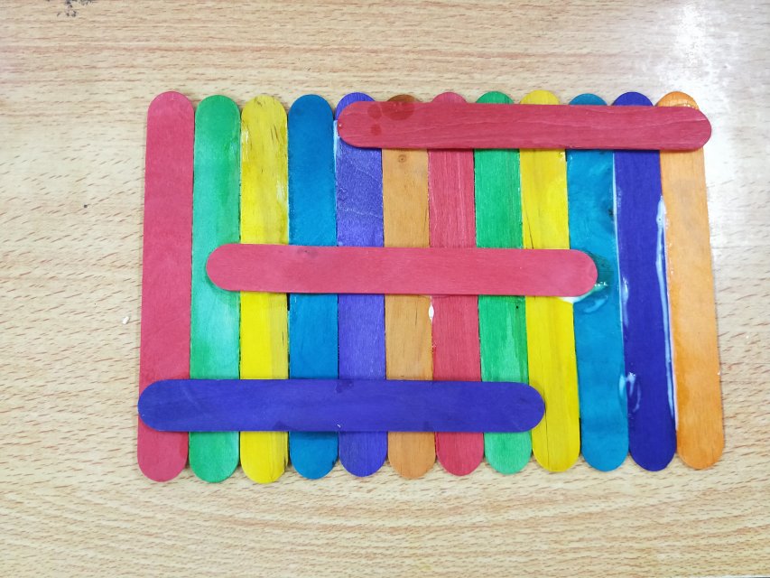 这次授课的内容非常有趣,居然是用我们平常爱吃的冰棒的棍来制作手工。社团出冰棒棍等物资,会员们自带小刀尺子笔和打火机。冰棒棍分为彩色的和普通颜色的,彩色的用来做房子的屋顶和门,普通颜色的做小屋的墙,学会拼接,这个就非常简单。前来参加的会员胡圣芳还兴奋的把自己完成好的作品拍下来发到群里,说:“这是我做好的,谢谢大家帮忙。”
