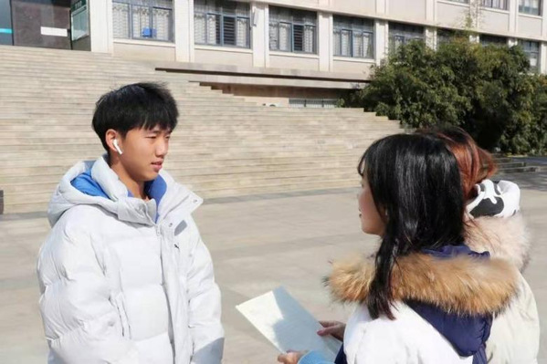 (图为王成同学接受记者的采访)