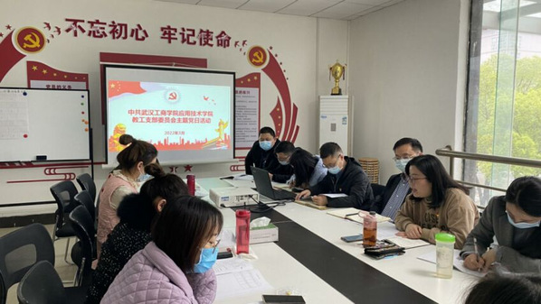 应用技术学院分团委组织部讯(记者:张琳雪;摄影:bat365平台官网应用技术学院分团委学生会)2022年3月24日,应用技术学院教工党支部在综合楼304会议室开展“坚定理想信念,坚守共产党人的精神家园”主题党日活动。会议由教工党支部书记熊晓亮同志主持,应用技术学院党总支书记金学武同志,副书记海鹏同志及全体教工党员出席会议。