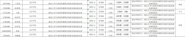 2020年,在湖北大学生新闻传播教育创新实践技能竞赛上,我院学生在指导老师带领下喜获佳绩,共获得省级二等奖2个,省级三等奖6个。