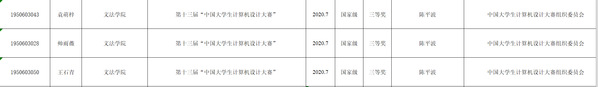 2020年,在第十三届“中国大学生计算机设计大赛”上,我院学生在指导老师带领下喜获佳绩,共获得国家级三等奖3个。